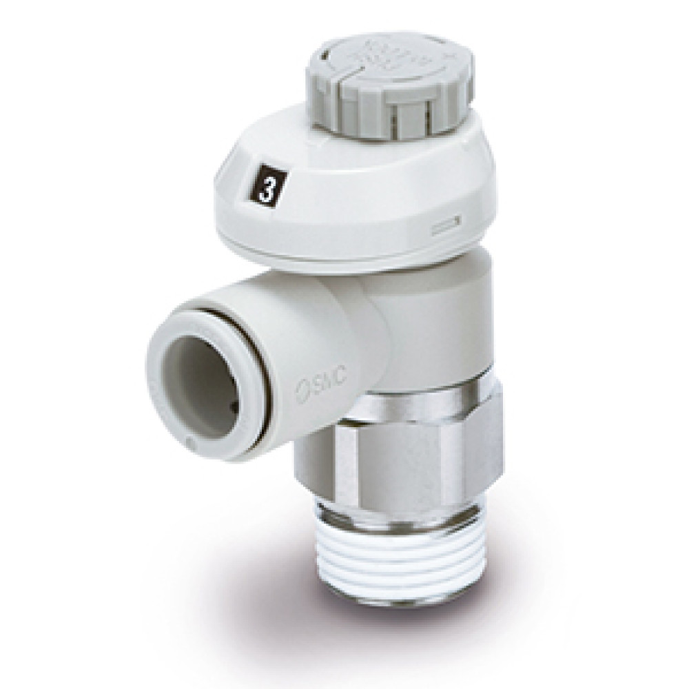 Пневмодроссели низкоскоростные с быстроразъёмным соединением, нажимной фиксацией и шкалой, углового типа/универсальные AS*FSM/FSC от SMC — надёжное решение для точной регулировки потока воздуха в пневматических системах. Обеспечивают стабильную работу оборудования. Идеально подходят для различных промышленных применений. Высокое качество и долговечность.