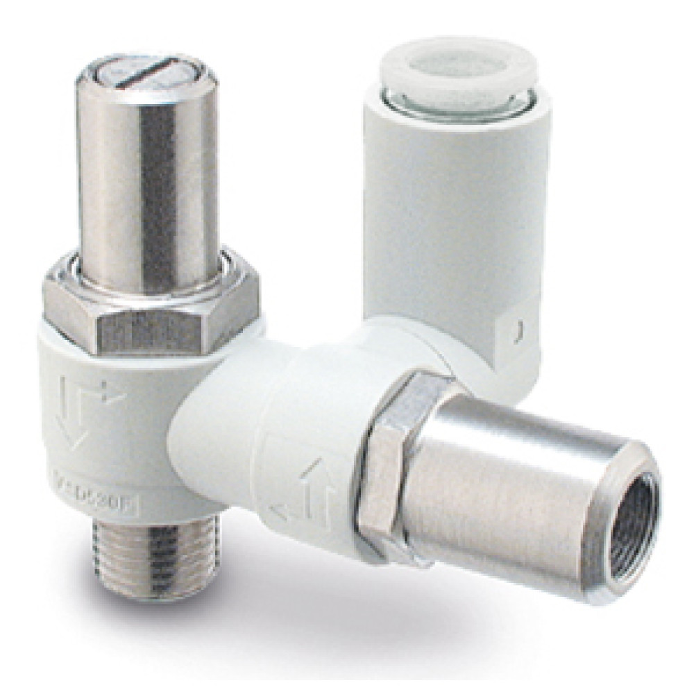 Пневмодроссели, Общего назначения, С быстроразъемным соединением, Pегулируемый отверткой, Двухсторонний - ASD-D