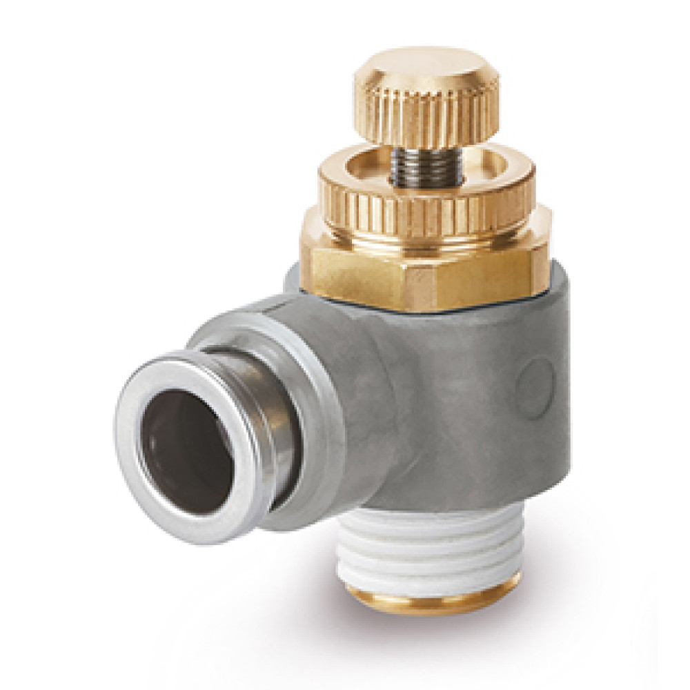 Пневмодроссели, Общего назначения, С быстроразъемным соединением, С простой ручкой, Наружные поверхности из металла, Угловой тип - AS*-X737