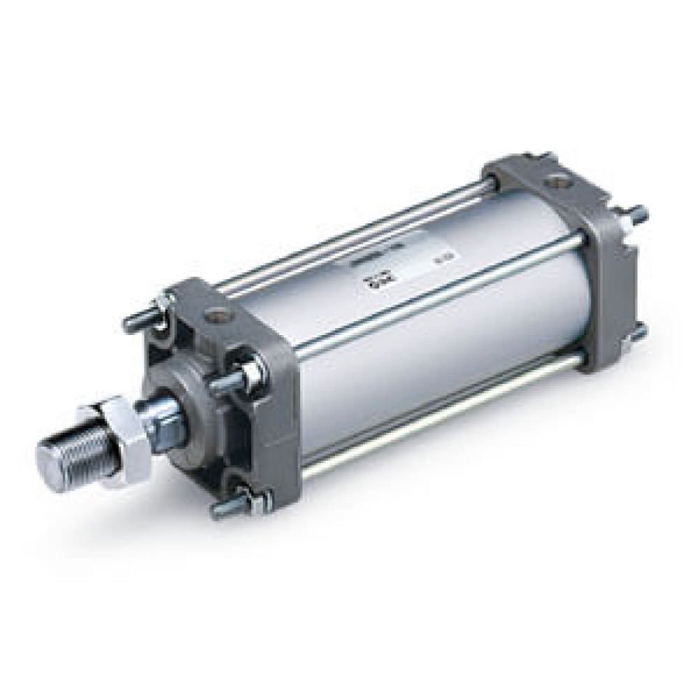 Пневмоцилиндр со стяжными шпильками, двустороннего действия с односторонним штоком.